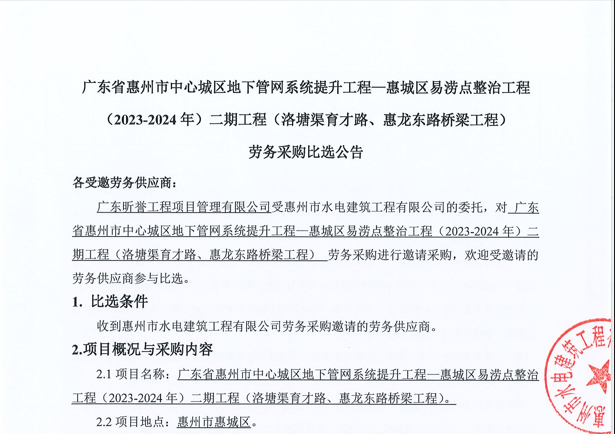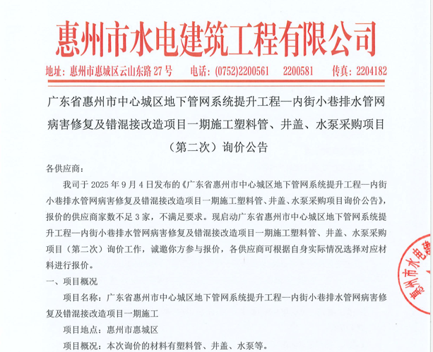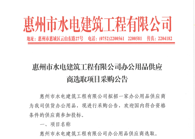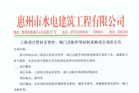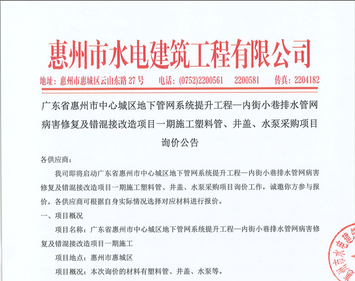 惠州市水電建筑工程有限公司成立于一九六四年四月,隸屬惠州市水務集團有限公司,是一家國有綜合性施工企業(yè),主營水利水電工程、房屋建筑、市政工程等施工業(yè)務。公司擁有水利水電工程施工總承包一級、建筑工程施工總承包一級、市政公用工程施工總承包一級、公路工程施工總承包三級,公路路基、路面及建筑裝修裝飾專業(yè)承包二級,環(huán)保工程、機電安裝、河湖整治、輸變電工程專業(yè)承包三級等經營資質……